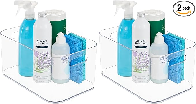 STORi Bliss XL Clear Plastic Storage Bin, Pantry Organizers & Storage Containers, Home Organization Must Haves for Kitchen, Laundry Room, Office, Closet, 12” x 8” Made in USA (Pack of 2)