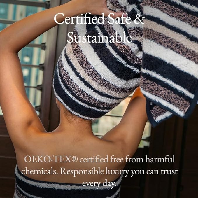 - Oeko-Tex Certified for Eco-Friendly Comfort – Certified by the Oeko-Tex Standard 100, these towels are guaranteed free of harmful chemicals, ensuring safety for you and your family. The towels are made from sustainably sourced Australian cotton, known for its high quality and water-efficient cultivation, so you can indulge guilt-free in everyday luxury