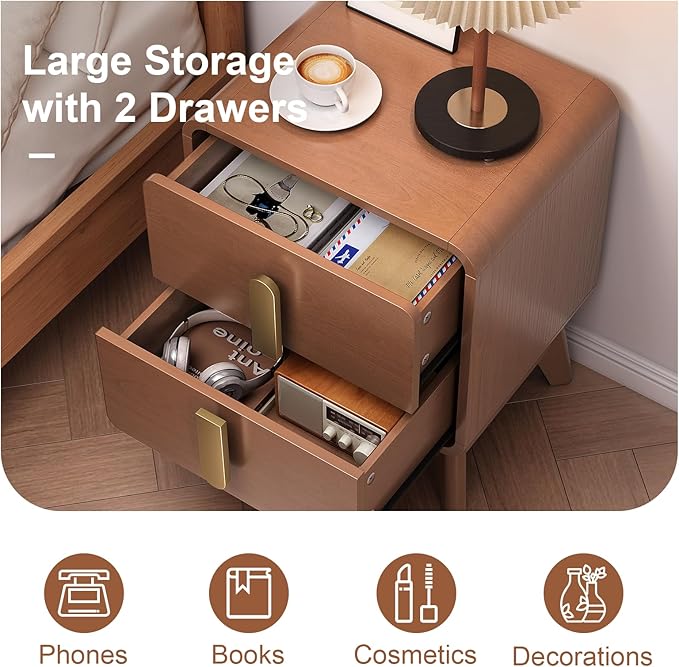 - Thoughtful Design Details: Featuring rounded, carefully polished corners to prevent injuries and keep your family safe. Tall cabinet legs make cleaning underneath easy, while a reserved space for skirting boards ensures the end table for bedroom sits flush against the wall for added stability