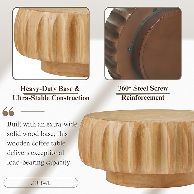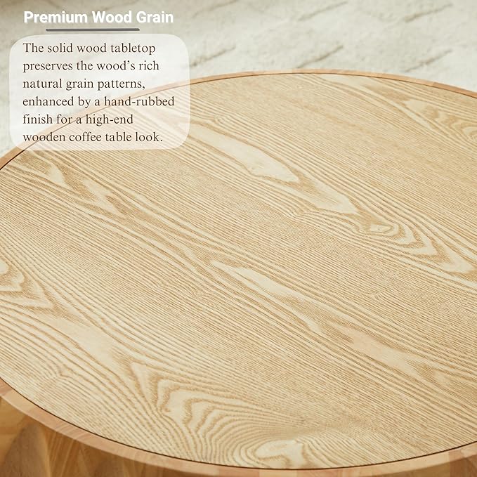 - 【Durable Solid Wood & Spacious Design】 Crafted from premium solid wood, this sturdy wooden coffee table (31.5" L x 13.78" W) features a thick 9.84" top for stability. Ideal as round coffee table or drum coffee table in living rooms.