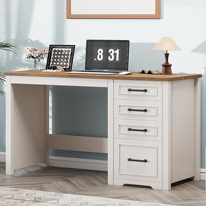 - 【Sturdy and Stable】Crafted from premium thick wood, this office desk is built to last. The reinforced base and advanced structural design provide exceptional stability, even on uneven floors. Additionally, the four drawers of this table can be freely installed either on the left side or the right side, greatly allowing you to make flexible use of the available space as needed.