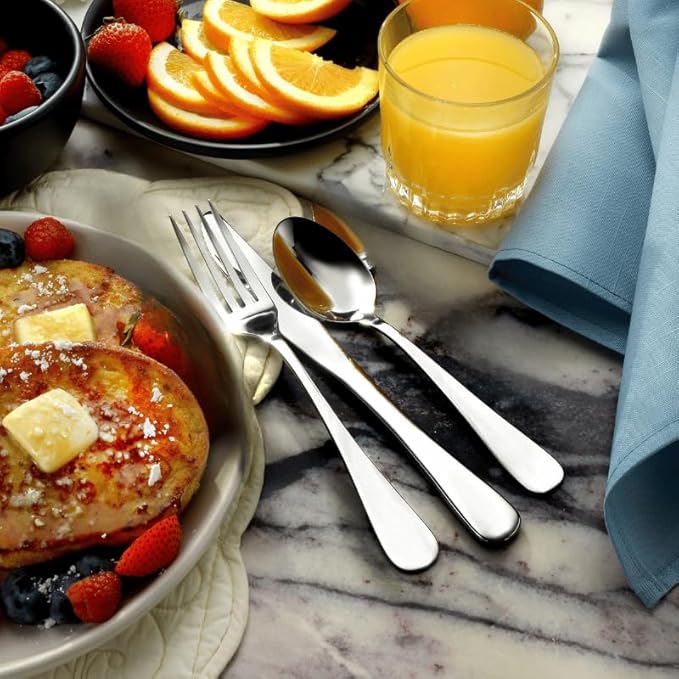 - SET CONTENTS: Complete 12-piece flatware set includes 4 dinner forks, 4 dinner knives, and 4 dinner spoons - perfect service for 4