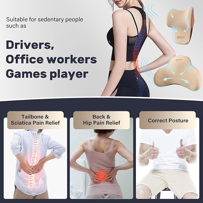 - Ergonomic Design: Our car lumbar support and headrest are ergonomically designed to provide the back/butt support that the original car seat lacks. Once in place, it conforms to the shape of your back/butt, keeping you comfortable while you are working or driving. Recommended by physiotherapists, it is a great way to promote healthy posture